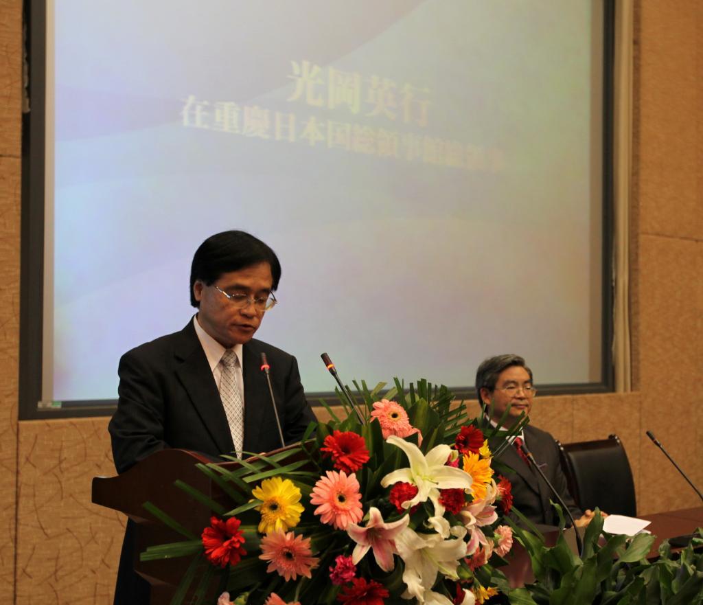 日本国驻重庆总领事馆总领事光冈英行在开幕式上致辞