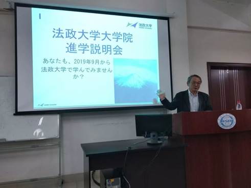 10月27日,日语系邀请法政大学大学院人文科学研究科伊藤达也教授及学生代表毛凤雨同学对法政大学大学院留学项目进行介绍,日语系师生等相关人员参加了此次宣讲。
