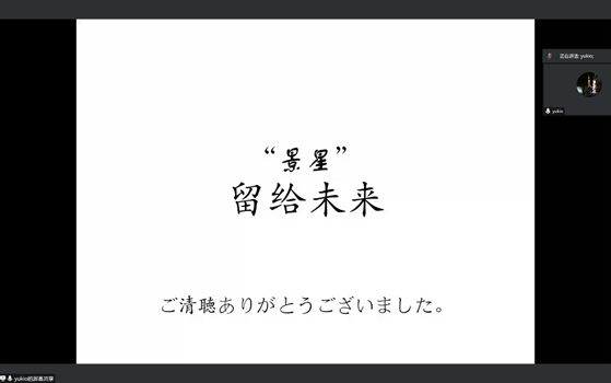 尾声之时,杨伟教授表示,希望通过这次讲座来传递研究日本文化的意义,鼓励新一代大学生不受困于压抑心情,可以通过自己的力量来连接未来,连接世界,并以“留给未来’’四个字样表达对同学们的殷切期待。
