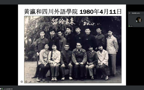 最后,杨伟教授向同学们展示了黄瀛先生在川外任教时与弟子们的合照,黄瀛先生与弟子们一代接一代传递着教育的薪火,展现出川外日语教育中一脉相承的精神。黄瀛先生是诗人,但也在多文化认同的领域里形成了不仅限于诗人的造诣。