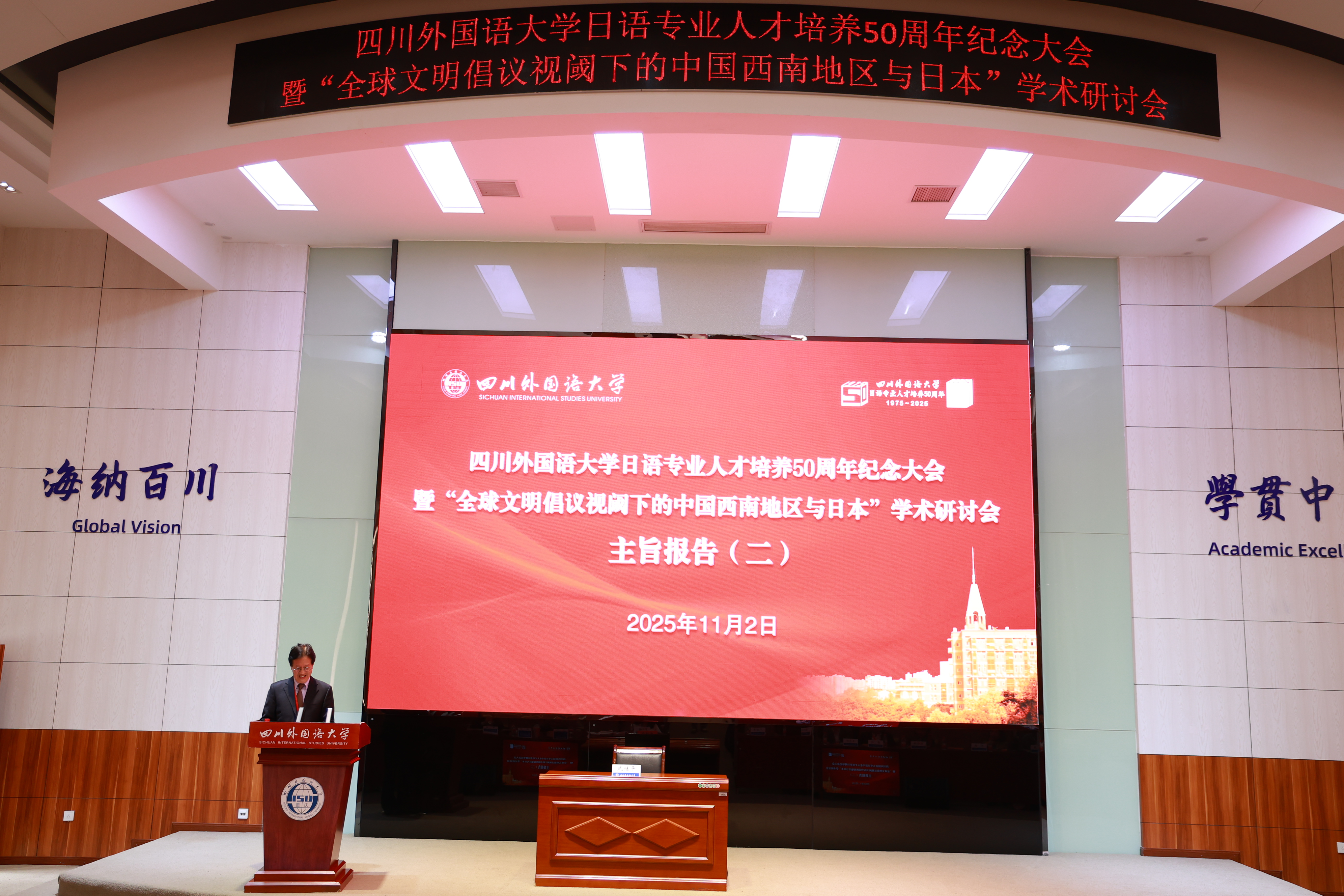 11月1日至2日,学校日语专业人才培养五十周年之际,学校举办“全球文明倡议视阈下的中国西南地区与日本”学术研讨会。这场汇聚中日两国50所高校、科研机构的百名学者的学术盛宴,包含两场高水平主旨报告,六场分科会,不仅是对半个世纪办学成就的致敬,更有跨学科的前沿探索。专家学者用详实考证与独到见解,解锁中国西南地区与日本跨越千年的文明交融密码,为全球文明互鉴注入新的学术活力。