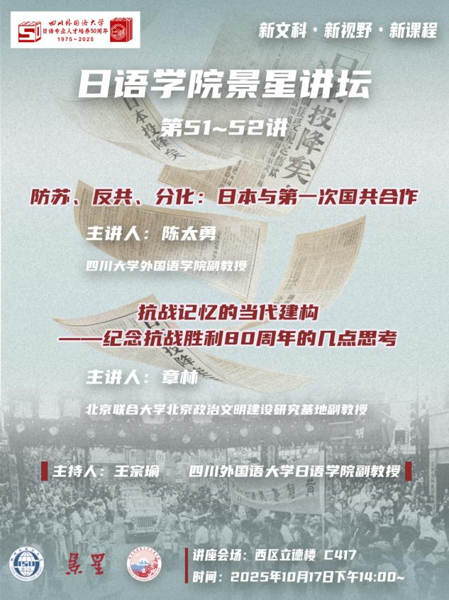 景星讲坛(51—52讲)|学者探讨日本对第一次国共合作策略与抗战记忆当代建构