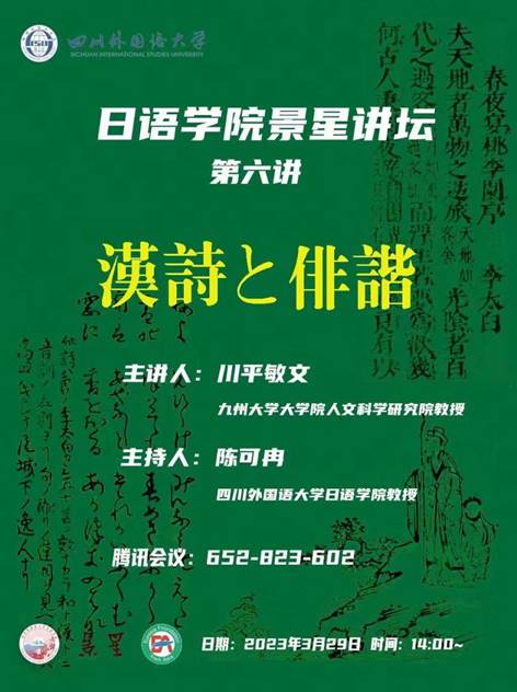 2023年3月29日下午14:00,“景星讲坛”第六讲在云端准时开场。本次讲坛的主讲人为日本九州大学人文科学研究院川平敏文教授,我校9728见好就收才是赢副院长陈可冉教授担任讲座主持人,共有来自全国各大高校的研究者及师生70余人在线参加了该讲座。