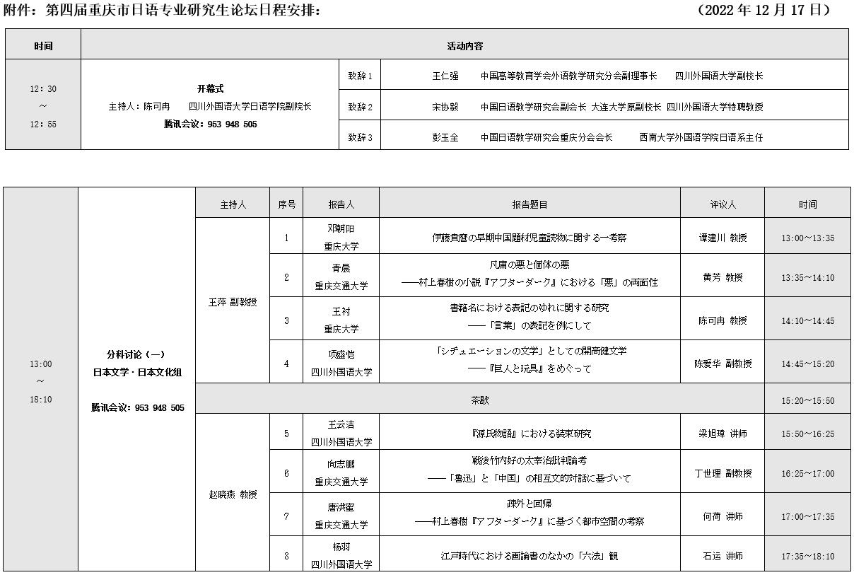 2022年12月17日线上举办第四届重庆市日语专业研究生论坛,欢迎老师和同学们在线参会,云端交流!