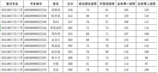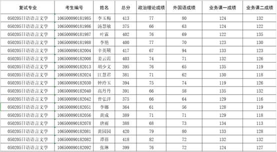 日语专业第一志愿上线考生复试名单