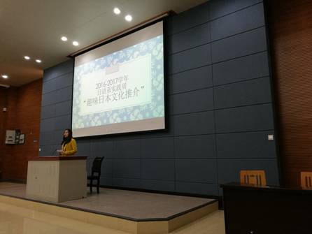 2016年10月31日上午八点半,日语系的老师和同学们聚集在西区B栋3楼报告厅,以热烈的掌声迎来了2016-2017学年第一学期学生教学实践周首场全系师生活动——“趣味日本文化推介”隆重启幕。“趣味日本文化推介”活动,以PPT展示和同学们的解说为主,通过PPT展示和生动形象,简明扼要的口头表达来表现同学们掌握知识、运用语言能力的表达能力。