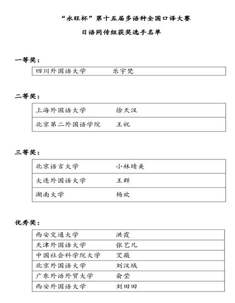 下午的决赛中,乐宇梵同学沉着冷静,思维清晰,中日语译文流畅准确,经受住了评委的严格评判,征服了所有评委及观赛人员,最终斩获日语同声传译组一等奖。这也是我院学子自参加此项全国级口译大赛以来首次夺魁。