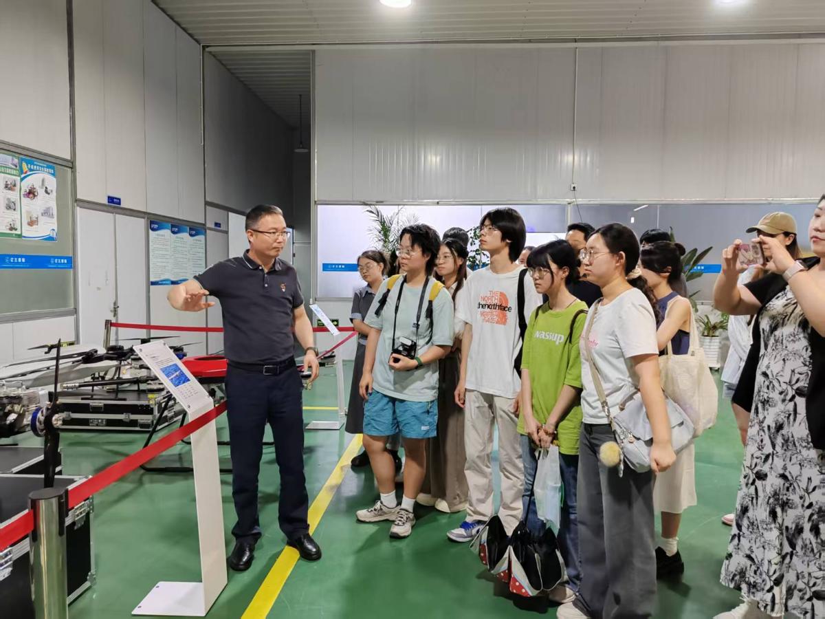 活动伊始,在亿飞智联无人机周云峰总经理的热情引导下,学生们首先观看了制作精良的企业宣传片。通过真实的画面与详细的解说,同学们对企业所覆盖的多元业务版图和丰富的无人机产品有了初步认知。随后,在周总经理的带领下,大家走进充满科技感的无人机展厅。在这里,形态各异的无人机模型陈列有序,同学们近距离观察着无人机的精密组成部件,聆听着企业负责人讲述无人机从诞生到蓬勃发展的历程、背后复杂的技术原理,以及在农业植保、物流配送、航拍摄影、应急救援等领域的广泛应用。当了解到无人机在灾害救援中争分夺秒运送物资、在广袤农田里高效完成植保作业时,同学们不禁为科技创新带来的巨大能量发出阵阵惊叹。离开展厅后,大家又深入无人机组装车间,通过企业负责人细致入微的讲解,了解到无人机从零部件到整机的全链条生产过程,直观感受科技成果落地的每一个环节。