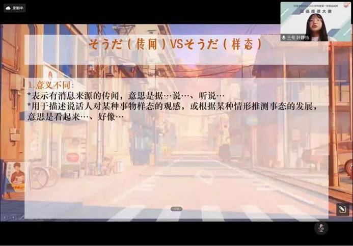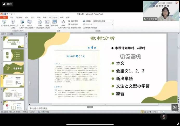最后,管尹莉老师对本次比赛做了精彩点评,并给予参赛同学们鼓励。首先肯定了同学们的付出与成果,互动点评意识强,但仍存在课时规划不太合理、与时政融入较为生硬等问题,希望同学们有则改之无则加勉。