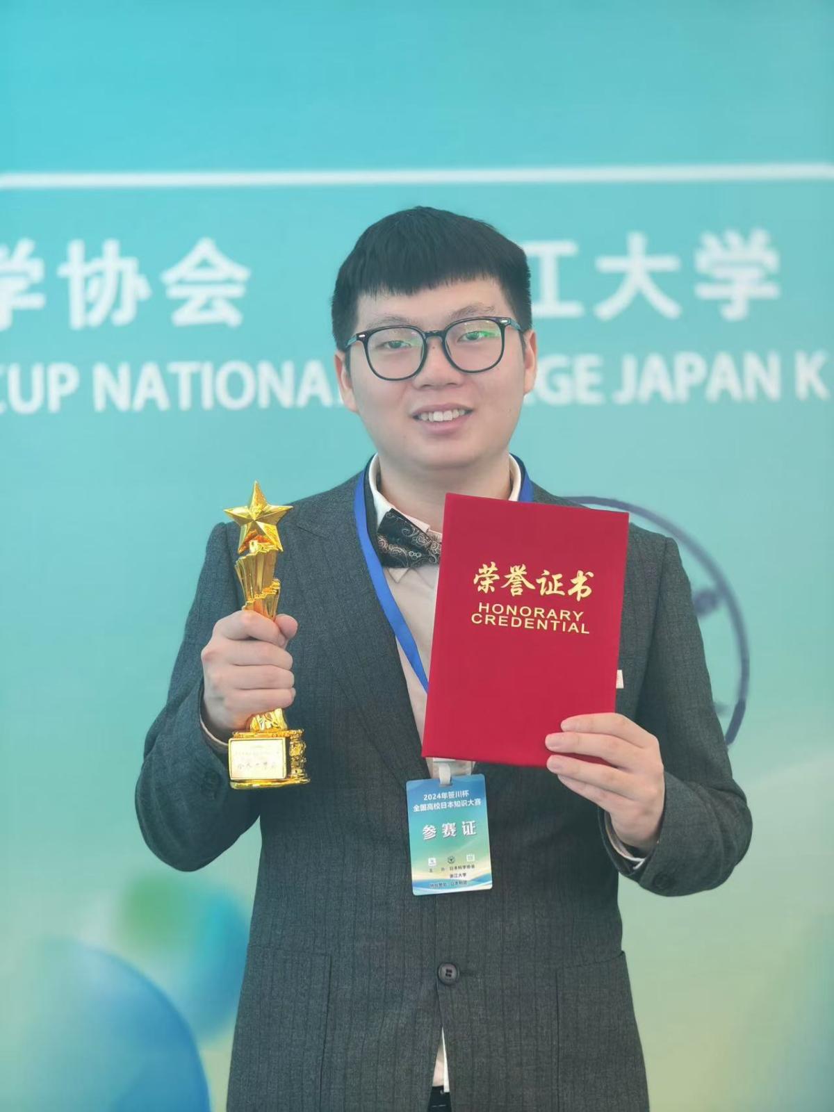 经过两天激烈角逐,2024年笹川杯全国高校日本知识大赛决赛于10月27日在浙江大学落下帷幕。本届大赛由浙江大学与日本科学协会共同主办,参加者包括全国各地100所高校的398名师生。我院学子实力不凡,表现卓越,取得佳绩。来自2021级3班的马长河同学荣获个人赛二等奖;由马长河、廖俊杰和孟霞三位同学组成的参赛小组喜获团体赛优秀奖。