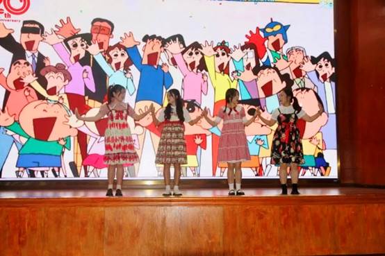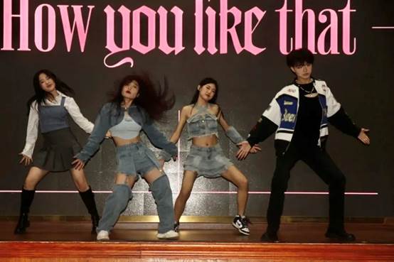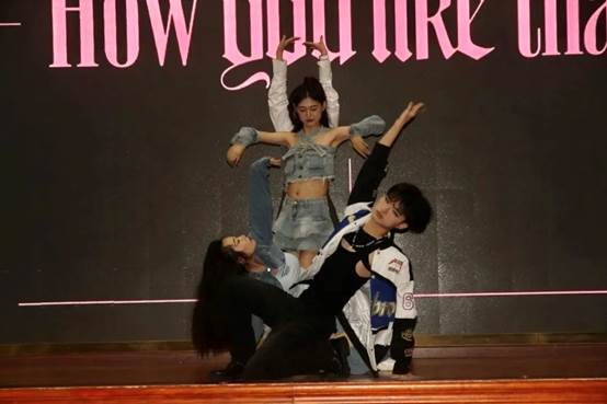 最后一个节目是当下备受欢迎的韩国女团的《how you like that》翻跳,现场也有很多同学跃跃欲试。玄若瑾、陈李来、杜蓉雨、杨诗晗四位表演者用充满活力的表演博得了观众席源源不断的欢呼与掌声。