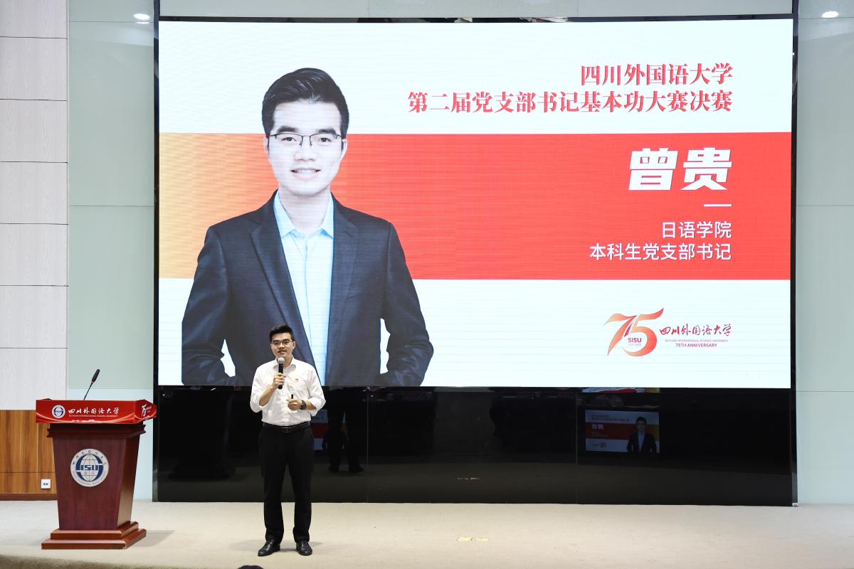 比赛分基础知识测试、理论宣讲、现场答辩三个环节,全面考验了党支部书记的理论水平、业务能力和综合素质。曾贵老师以“铭记历史,‘船’承精神”为主题,巧妙地串联起中共一大“红船”、渡江战役“小木船”与新时代三艘航空母舰三大历史意象,通过具象化的船舶符号阐释了红船精神的核心理念,系统勾勒出中国共产党人“为中国人民谋幸福,为中华民族谋复兴”的初心使命,在跨越百年的时空对话中展现出共产党人的奋斗足迹与精神密码。日语学子陈泓君在观赛后说到:“这样的党课生动形象,我们爱听”。