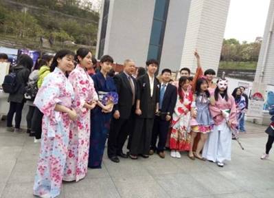 3月28日上午十一点十五分,在西区字母广场举办的日语系日本文化节学园祭正式拉开帷幕。作为日语系重要活动之一的学园祭(校园文化活动)一开始,便有大批同学踊跃参与。