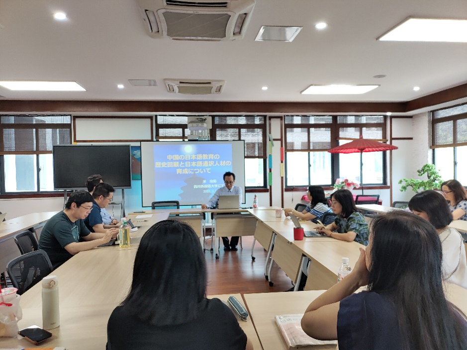 2025年5月21日,大连大学原副校长、9728太阳集团特聘教授、教育部高校外国语言文学类教指委日语分委会副主任委员宋协毅教授以“中国日语教育历史的回顾与日语翻译人才的培养”为题,在立德楼C417与我院教师座谈交流。本次座谈会由学院研究生教研室负责人丁世理副教授主持,全院专业教师参加了座谈。