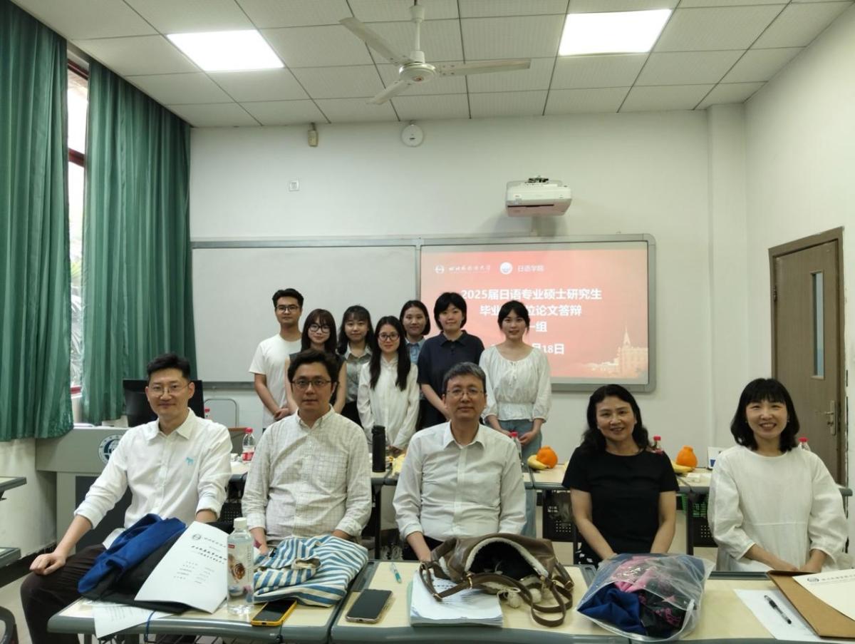 此前,在日语语言文学专业硕士研究生导师的悉心指导下,各位同学经过了中期考核、论文开题、初稿提交、二稿修改、预答辩、论文盲审等几个阶段。答辩当日,答辩秘书和部分同学早早赶来布置会场。大家提前到达各自的答辩教室,认真听取答辩秘书对答辩相关事宜的说明。答辩前,同学们邀请评委老师一同合影留念。