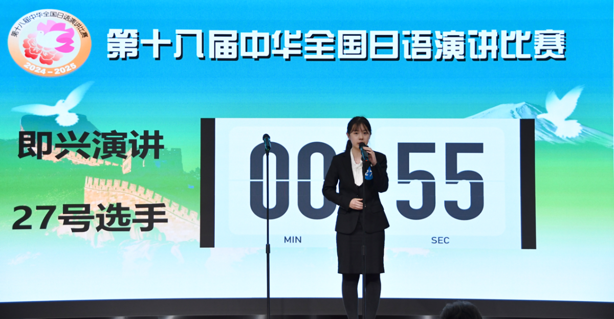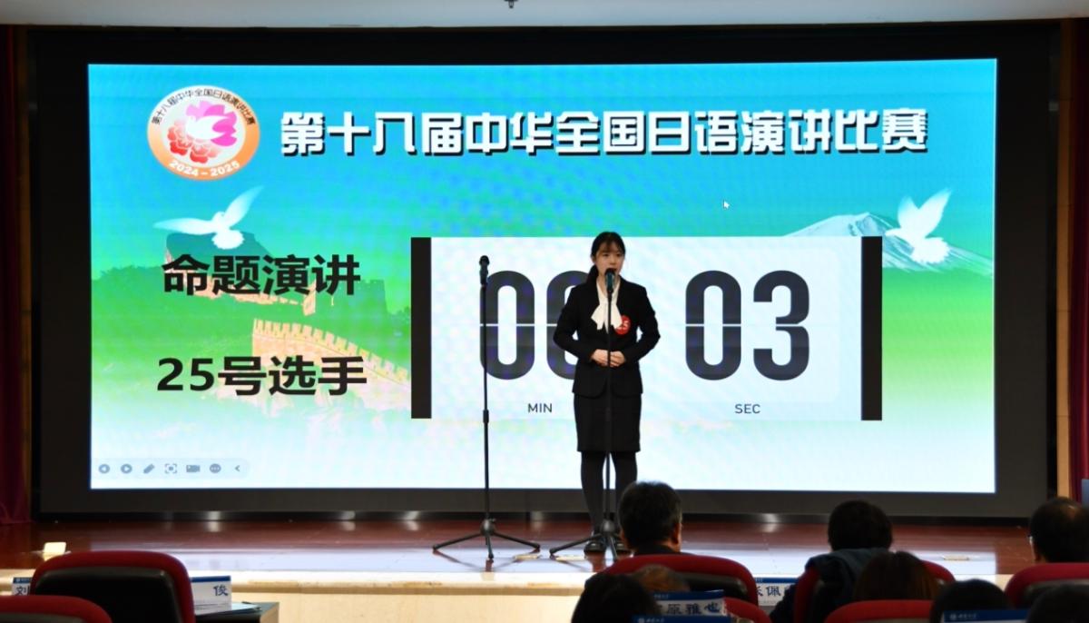 期中华全国日语演讲大赛是由中国教育国际交流协会、日本经济新闻社、中日学术交流中心(日本华人教授会议)联合主办的一场全国性日语演讲比赛,旨在增进中日两国人民之间的友谊、加深相互理解,提高中国大学生学习日语的热情,促进其日语水平的提高。从2006年至今每年举办一次,是唯一覆盖全国、受到教育部认可的日语演讲比赛。期待李子怡同学再接再厉、不负众望,在2025年3月24日东京总决赛中与全国的优秀选手巅峰对决,展现川外学子、川外日语人的良好风貌!