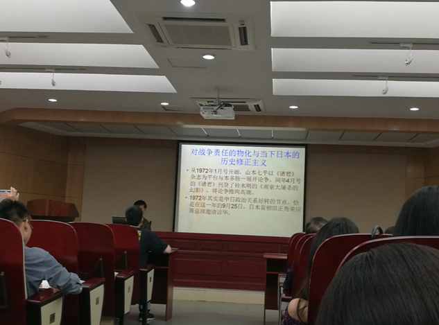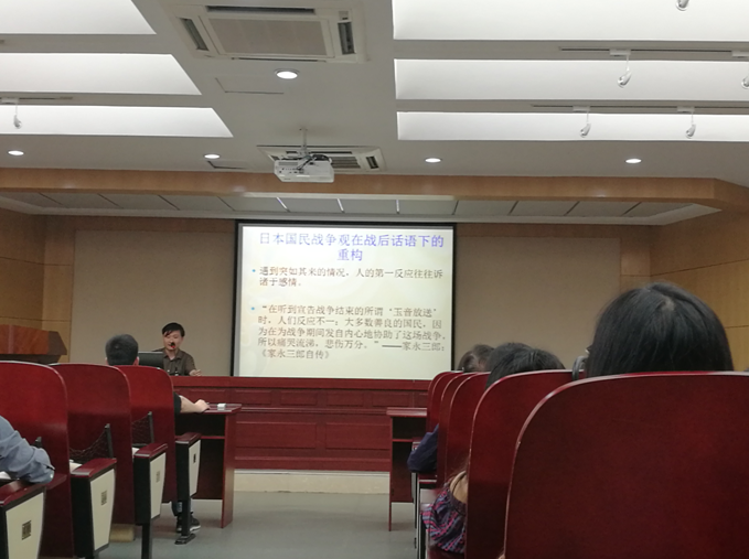 讲座伊始,李老师就提出了“谁是日本人”这一问题,以此为契机,指出作为研究对象来表述时,“日本人”以及“战争认识”均是一种观念而不是一个可以感知的存在。在对主题进行梳理之后,李老师首先介绍了“明治时期日本国民战争论的养成”,引用了大井宪太郎等人的看法,以及新闻报纸的报道等,分析指出当时存在于日本社会中的“先进文明应当领导落后文明”思想。其后,李老师对“全面侵华时代战争的多面性”进行了介绍,通过列举普通士兵、随军僧侣、作家等不同身份者的看法,表明当时那个时代下的日本人对战争认识的欠缺与不足以及错误。随后,通过对“日本国民战争观在战后话语下的重构”的分析,指出日本对战争的认识更多是短时间内在外压下建构而成,并未经过深刻内省,所以不仅时常受到外界影响且常出现反复。最后,李老师提到“对战争责任的物化与当下日本的历史修正主义”,指出物化了的赔偿问题使得“历史认识”与“战后责任”被混淆合一。最后在结语部分,李老师指出谈论日本人身为加害者的自我形象的话语被从战败后的日语中予以剔除,日本社会已经认为战争不再重要,不再思考战争这一问题。但同时表示,就像漫长的历史所证明的,斩断历史与当下的联系只能是徒劳。