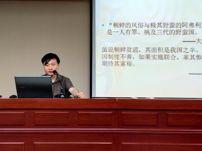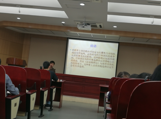 图 1 李若愚老师介绍“明治时期日本国民战争论的养成”