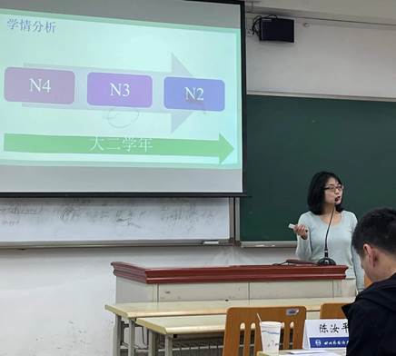 比赛中,各位参赛教师整合课程教学资源,聚焦学科前沿,从课程性质、学情分析、教学理念、教学方法、创新特色、教学效果及获得成果等方面进行汇报。比赛包括两个环节,现场汇报及评委提问。杨玲老师围绕《日语阅读》课程中的创新实践、思考、体会进行了汇报。杨老师富有亲和力的汇报、具有感染力的发言,征服了现场的评委及观众。在问答环节,杨老师逻辑清晰、反应敏捷,以自身的实力与魅力获得了所在组别的冠军。