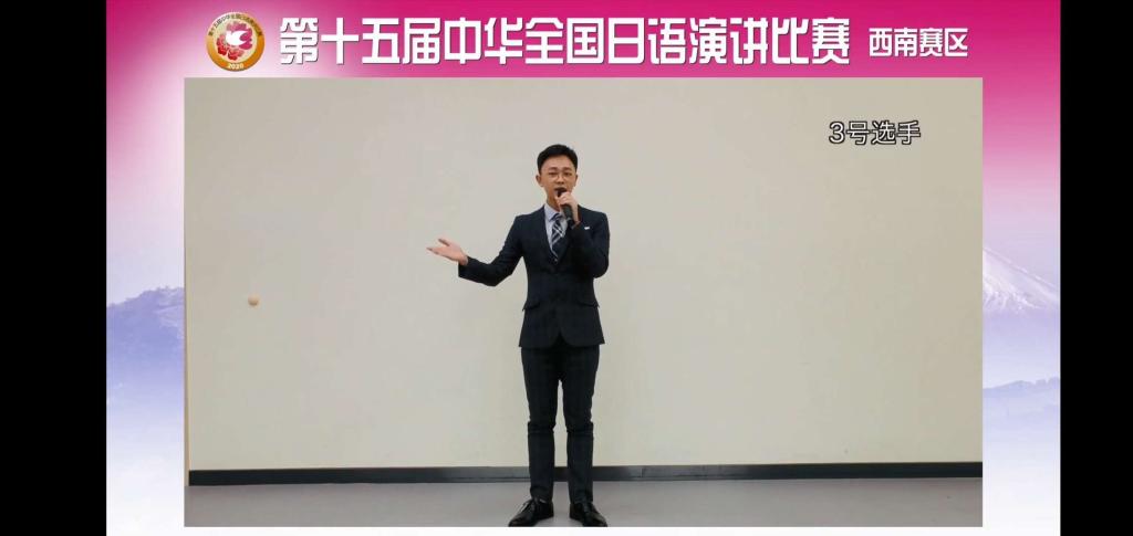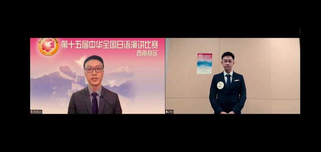 疫情尚未结束,防控仍是重点。为最大限度保证参赛人员的健康安全,本次大赛采取线上线下相结合的方式进行。比赛方式的变化,对参赛选手来说是个全新的考验——观众不仅有在西南大学主会场的评审老师,还有直播平台近两万人次的在线观看。除了日语表达能力之外,对参赛选手的镜头感觉以及心理素质都是不小的挑战。