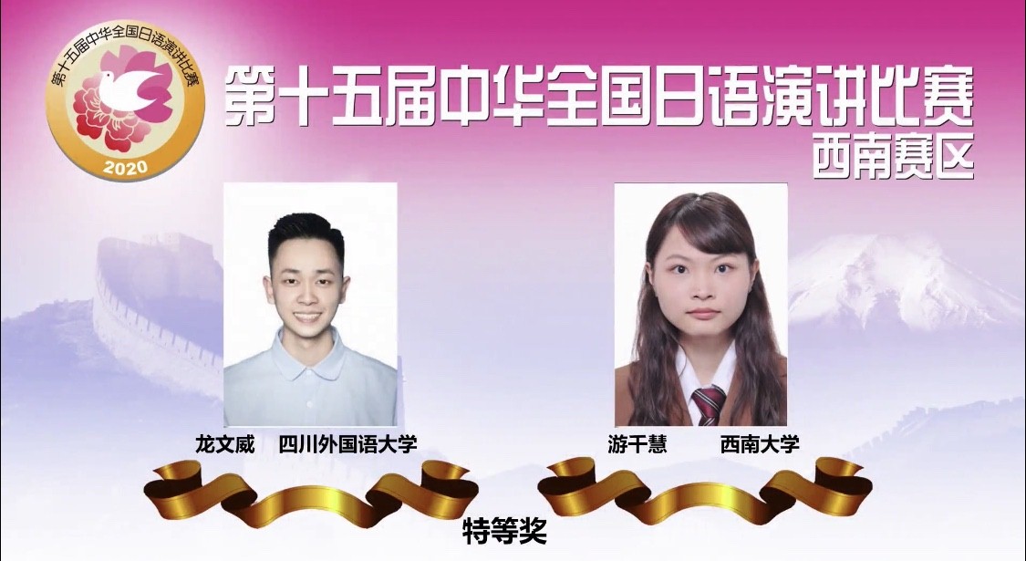 “中华杯”全国日语演讲比赛是经教育部批准,由中国教育国际交流协会、日本经济新闻社、日本华人教授会议联合举办的我国日语教育领域最具影响力的权威赛事。据统计,“中华杯”开赛十五年来,我系共选送17名专业表现突出、综合素质优异的学生参赛,累计获得特等奖11次、一等奖4次、三等奖2次,展现出我系作为西南地区唯一的日语专业国家级一流本科专业建设点的学科实力。