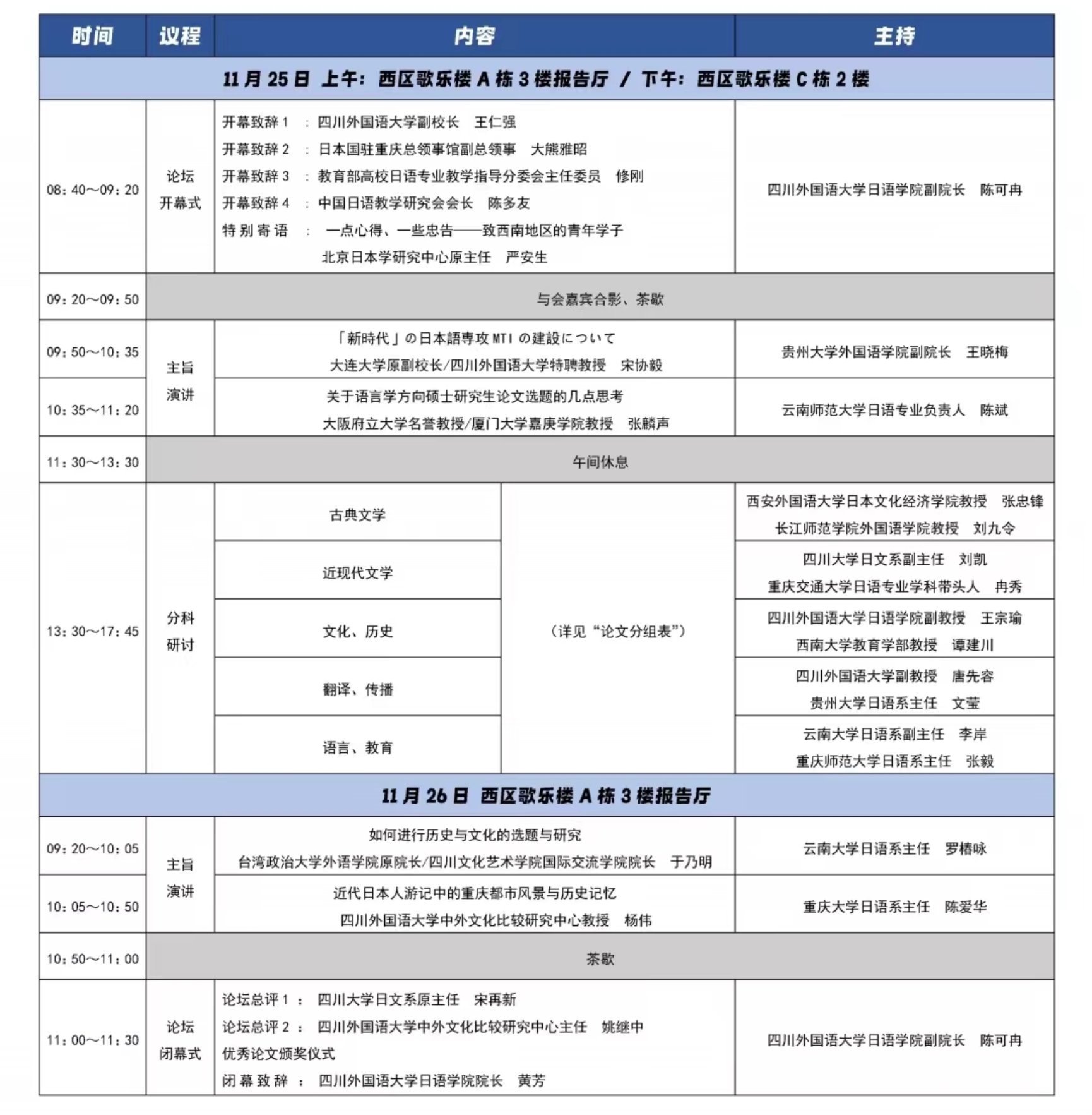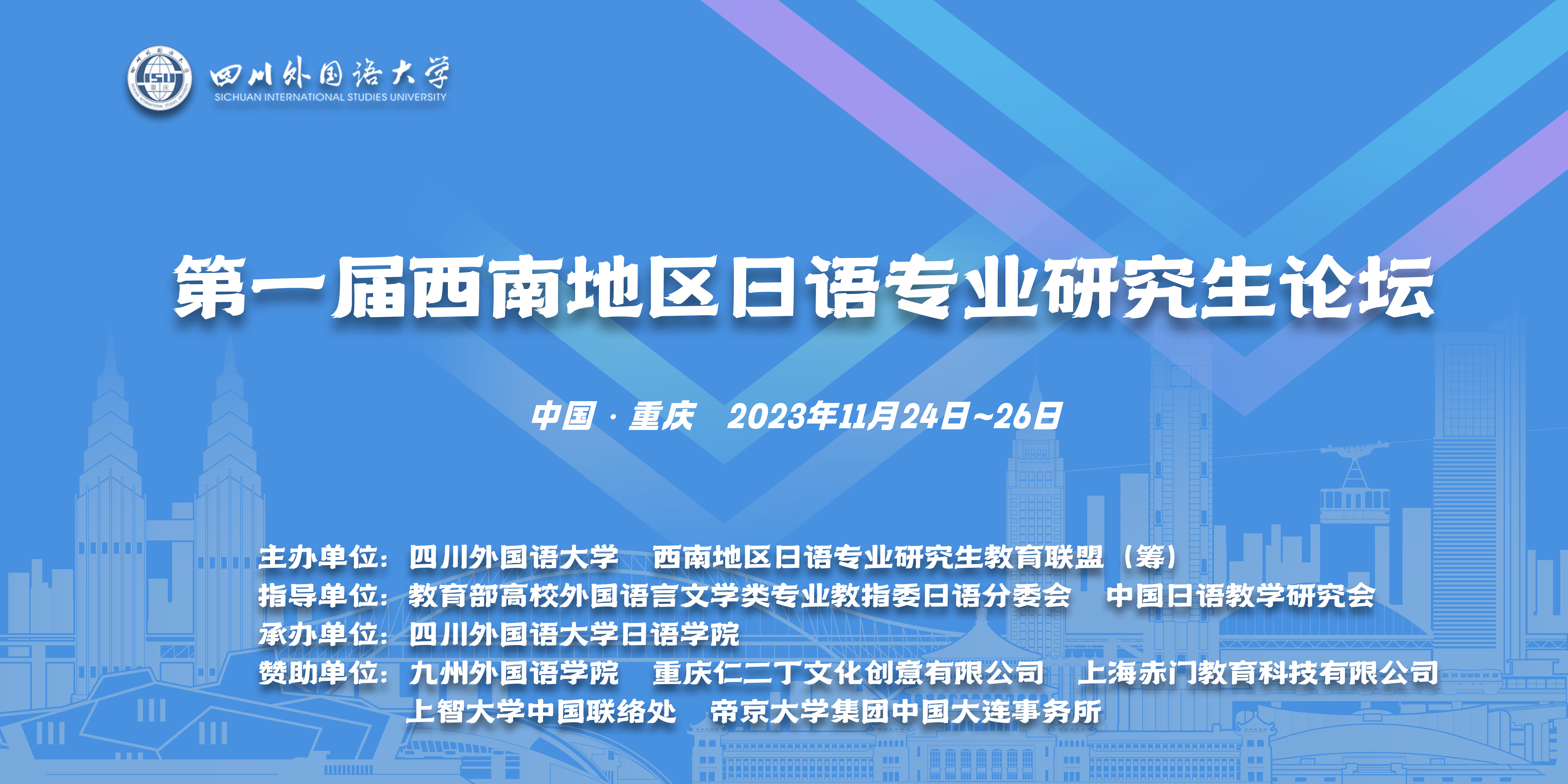 11月24日至26日,由9728太阳集团和西南地区日语专业研究生教育联盟(筹)共同发起主办,9728太阳集团,9728见好就收才是赢承办的“第一届西南地区日语专业研究生论坛”在川外西区歌乐楼成功举办。