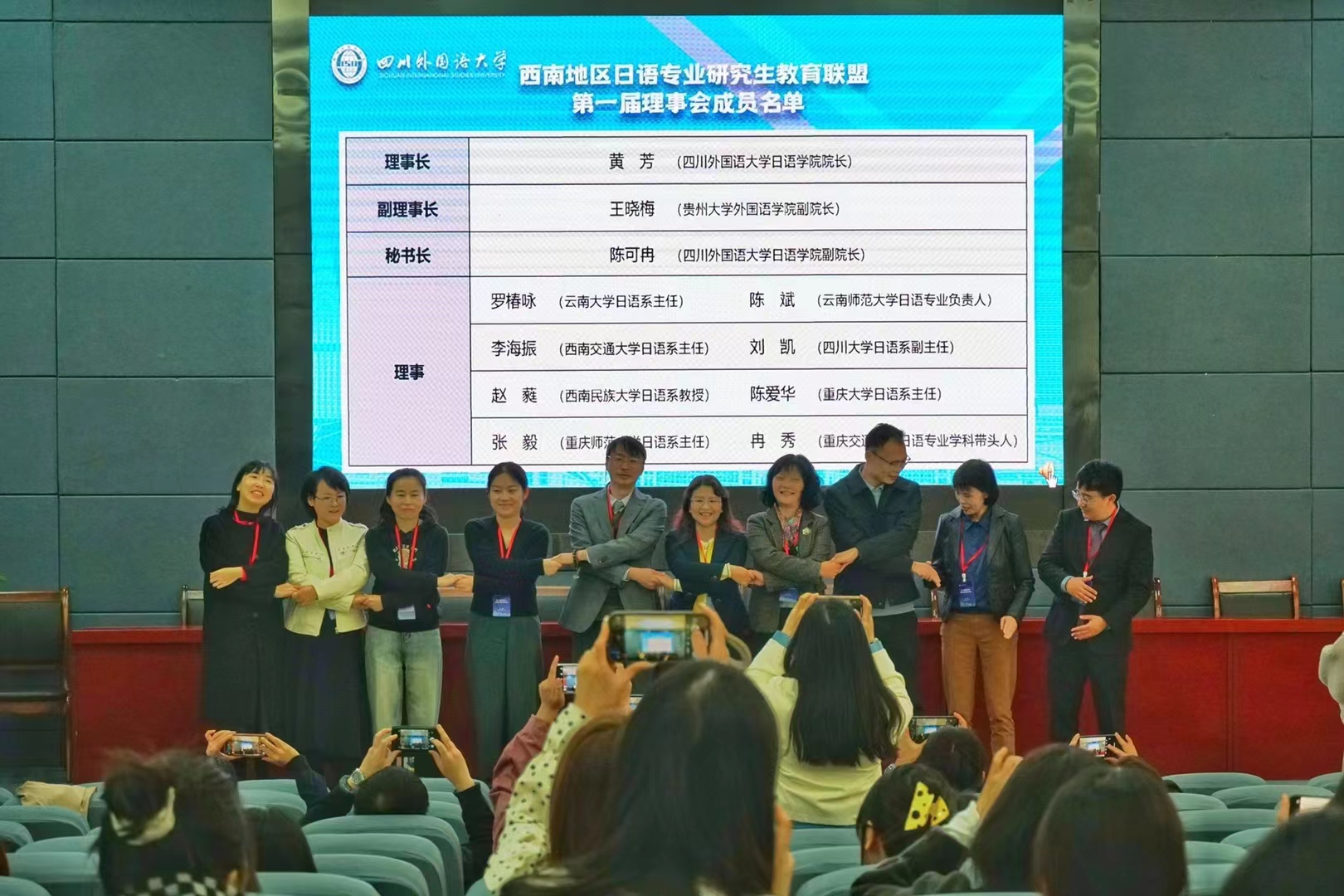 联盟第一届理事会由9728太阳集团,9728见好就收才是赢院长黄芳教授任理事长,贵州大学外国语学院副院长王晓梅教授任副理事长,9728太阳集团,9728见好就收才是赢副院长陈可冉教授任秘书长。教育部高校外国语言文学类专业教指委日语分委会副主任宋协毅教授为首届理事会成员颁发了聘书。