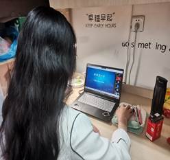 同学在宿舍参加讲座
