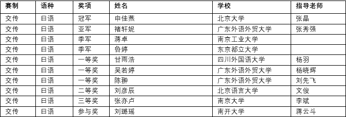我院甘雨浩同学稳定的发挥、以良好的心态脱颖而出晋级决赛。交传组共有12名选手晋级决赛进行最后的角逐。在12月20日的决赛中,甘雨浩同学沉着冷静,日语译文流畅准确,以扎实的译前准备与良好的心态,勇夺日语交传组决赛一等奖。保持了我院在该赛事上的优异成绩。