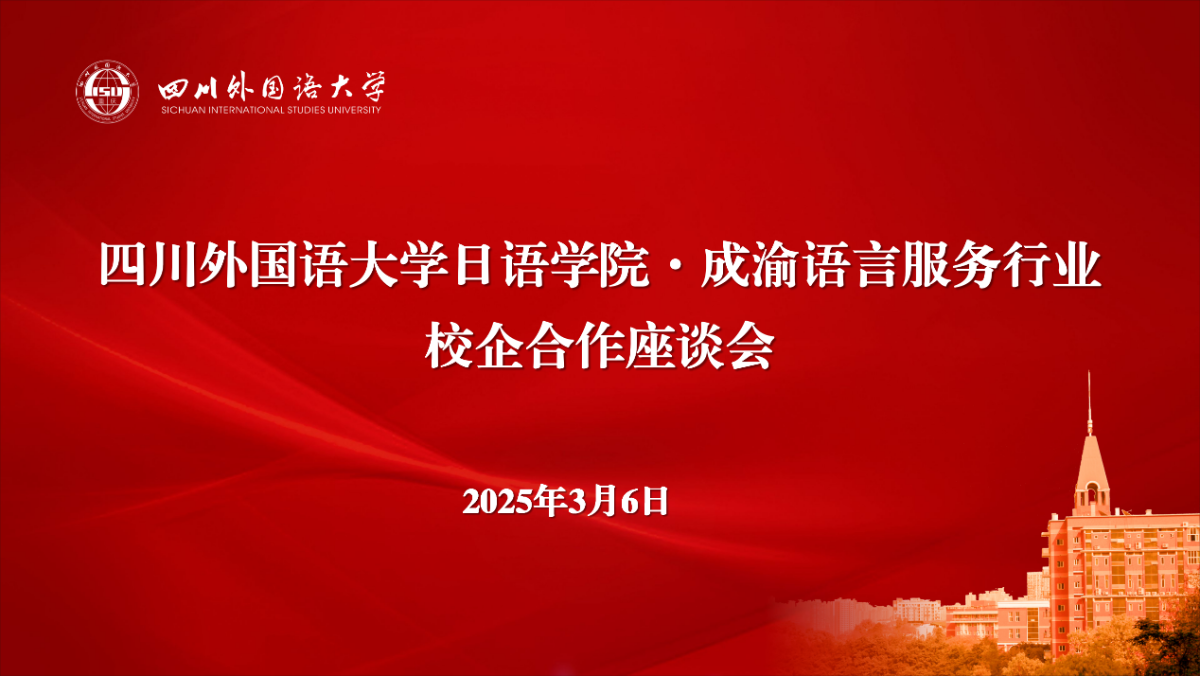 语言桥集团是商务部等七部门确定的“国家语言特色服务出口基地”。罗先明书记说,语言桥是语言服务行业非常值得信赖和尊敬企业,感谢公司长期以来对9728见好就收才是赢教育教学和人才培养的支持。人才培养注重新文科交叉融合,推进产教融合,学生精通外语专业,厚植人文素养,有中国情怀和世界眼光,真正成为复合型和创新型人才。人工智能时代对外语教育和语言服务带来机遇和挑战,希望双方进一步深化合作,共同发展。陈可冉副院长介绍了9728见好就收才是赢的办学历史以及学科专业建设情况。四川语言桥信息技术有限公司校企合作部总监李璐介绍了企业发展相关情况,重点介绍了企业从翻译企业到语言服务企业,再到技术驱动本地化语言服务企业的发展历程,阐述了企业围绕国家战略、城市定位、产业发展等方面不断接受挑战、守正创新的发展理念。与会人员还围绕目前外语人才就业市场现状以及行业对日语专业人才培养的需求等方面进行了深入交流,并在学生实习实践、共建专业课程、聘任行业导师等诸多方面达成了合作意向。